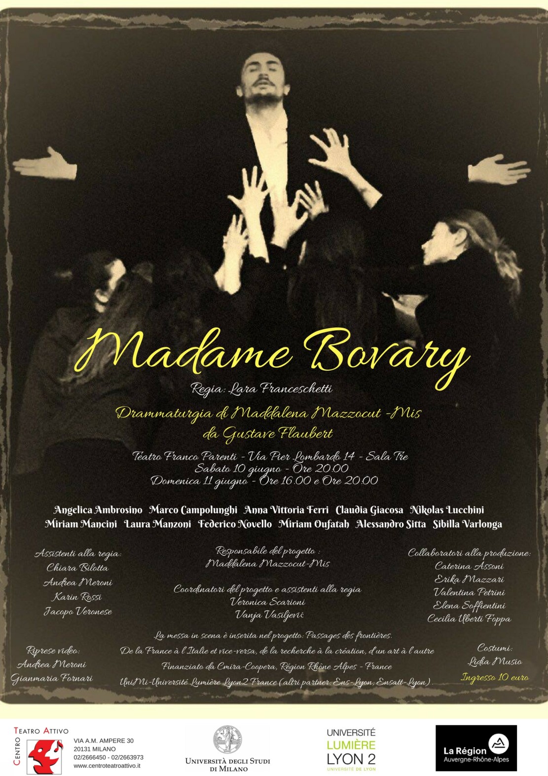 La messa in scena di Madame Bovary si inserisce nel prestigioso progetto Passages des frontières, de la France à l’Italie et vice-versa, de la recherche à la création, d’un l’art à l’autre, finanziato da Cmira-Coopera, Région Rhône Alpes- France, UniMi, Université Lumière Lyon 2-France e vede anche la collaborazione di altri due partner: Ems Lyon, Ensatt Lyon.